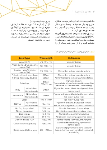 Laser type Wavelength Cutaneous