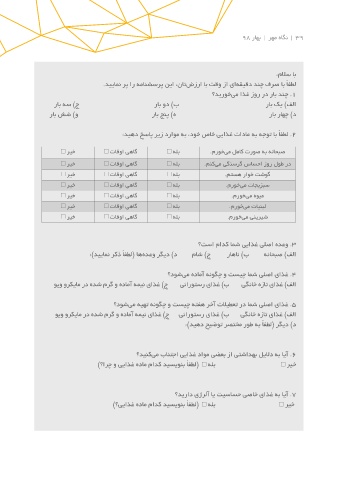 :دیهد خساپ ریز دراوم هب ،دوخ صاخ ییاذغ تاداع هب هجوت اب ًافطل .2